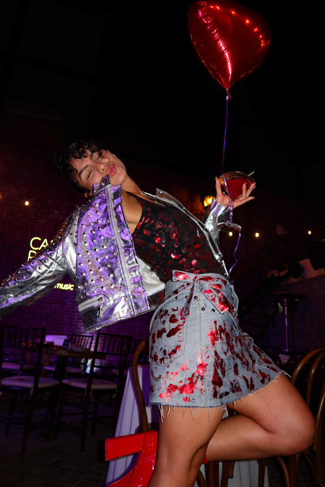 BLUSA NEGRA A LA CINTURA CON TONOS METÁLICOS ROJOS (EL PATRÓN DE CADA DISEÑO PUEDE VARIAR DE LA FOTO ORIGINAL)